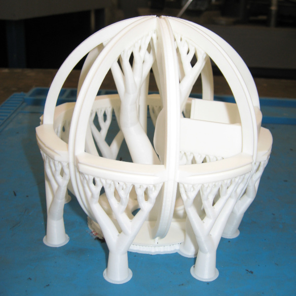 Remember when I said 5″ was the Goldilock Size? When put together it just didn’t quite have the presence I wanted. There were also several things about the design of the inner structure I didn’t like: the slots for the retainer tabs in the top of the sphere had to be printed with supports. These were difficult to remove and interfered with smooth turning of the top. The locking ring covered some of the LEDs, hurting appearance. It was harder than necessary to install the LED strings.