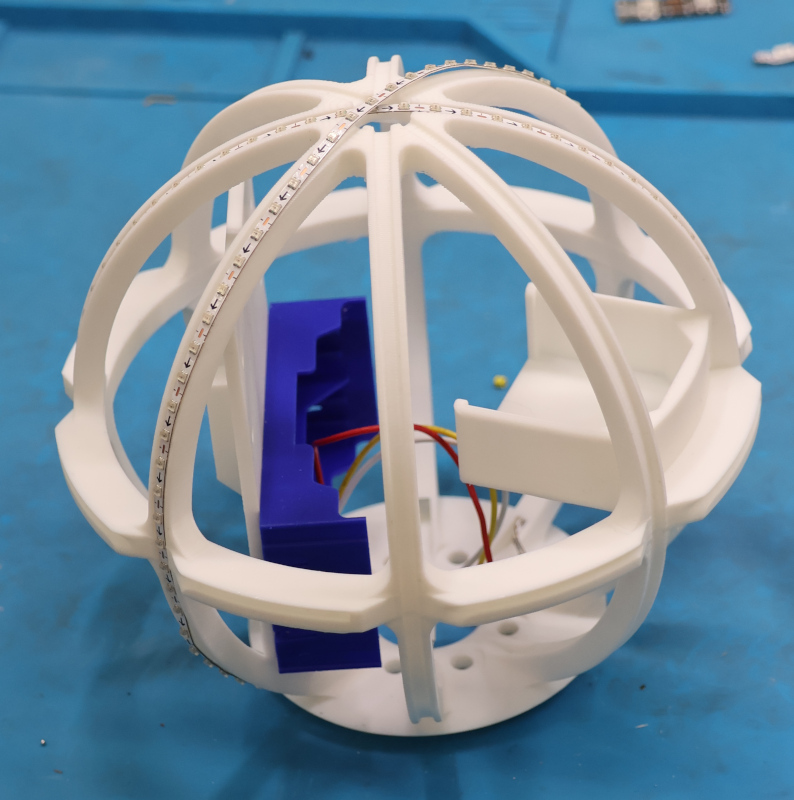With the CAD work done and parts in hand the next step was to actually assemble the Orb. Of course the electrical engineer had some last minute changes. Batteries kept falling out of the battery box, so he selected a different one.